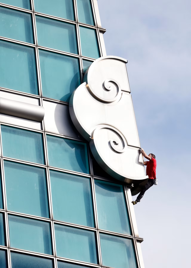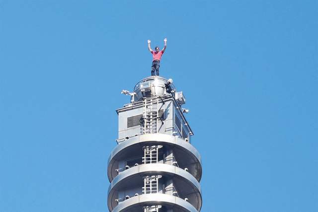 除了金属龙形装饰的考验,霍诺德在登顶最后阶段还遭遇了强风干扰。“大楼顶部的风很大,刚好直接吹向我攀爬的拐角,其他区域还能被建筑遮挡,” 他回忆道,爬到拐角时几乎被风吹得站不稳,“踩在龙形装饰上时也是如此,躲在龙身左侧能避风,可一旦伸手靠近龙身边缘,强风就会扑面而来,那种冲击力特别明显。”
